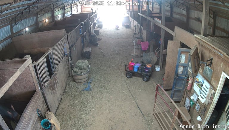 Full board services with spacious stalls and access to 26 acres of lush pasture.